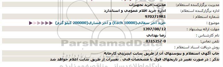 اداره برگزارکننده استعلام: اداره خرید اقلام عمومی و استاندارد