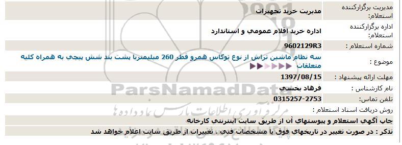 اداره برگزارکننده استعلام: اداره خريد اقلام عمومي و استاندارد