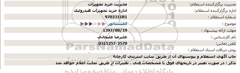 اداره برگزارکننده استعلام:     اداره خرید تجهیزات هیدرولیک
