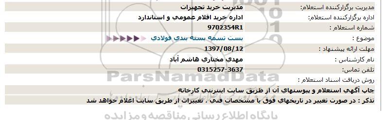 اداره برگزارکننده استعلام: اداره خرید اقلام عمومی و استاندارد