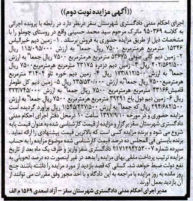 مزایده زمین دیم 15346 مترمربع کلاسه 950369 نوبت دوم