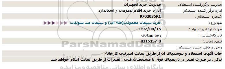 اداره برگزارکننده استعلام:اداره خرید اقلام عمومی و استاندارد