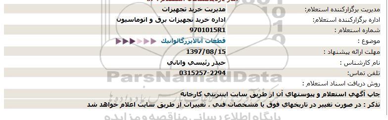 اداره برگزارکننده استعلام: اداره خرید تجهیزات برق و اتوماسیون