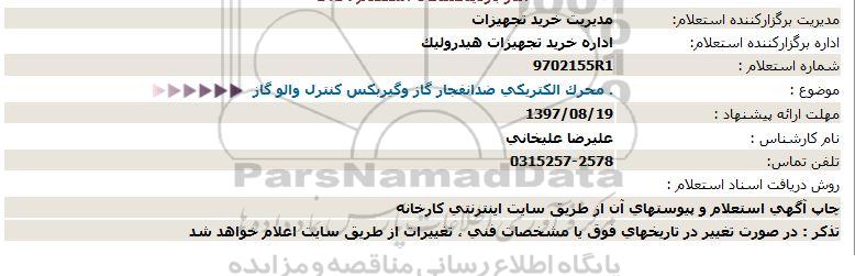 استعلام محرک الکتریکی ضد انفجار گاز و گیربکس کنترل والو گاز , استعلام , استعلام محرک الکتریکی ضد انفجار گاز و گیربکس کنترل والو گاز