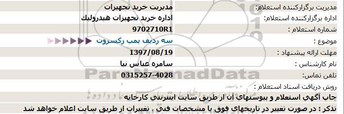 اداره برگزارکننده استعلام: اداره خرید تجهیزات هیدرولیک