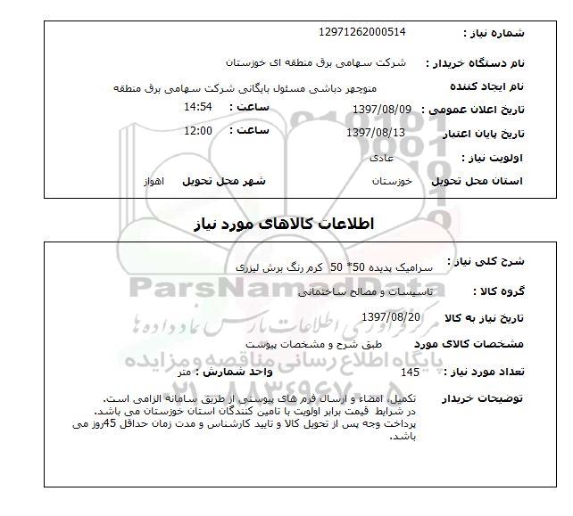 نام دستگاه خریدار شرکت سهامی برق منطقه ای خوزستان
