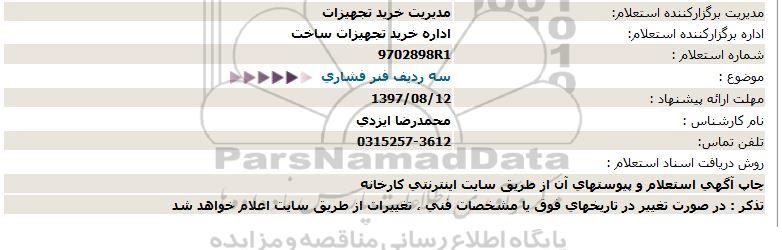 اداره برگزارکننده استعلام: اداره خرید تجهیزات ساخت