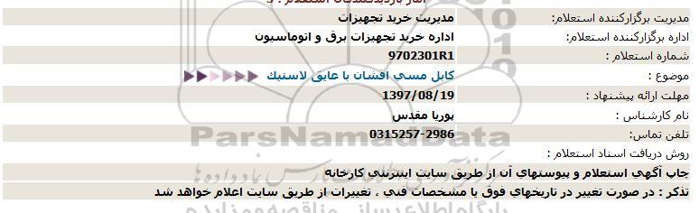 اداره برگزارکننده استعلام: اداره خرید تجهیزات برق و اتوماسیون