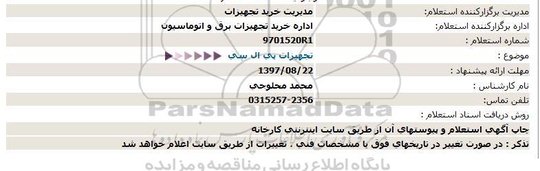 استعلام تجهیزات پی ال سی , استعلام، استعلام تجهیزات پی ال سی