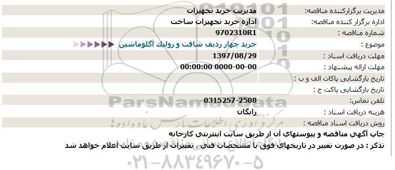 استعلام خرید چهار ردیف شافت و رولیک آگلو ماشین , استعلام , استعلام خرید چهار ردیف شافت و رولیک آگلو ماشین