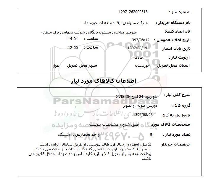 نام دستگاه خریدار: شرکت سهامی برق منطقه ای خوزستان