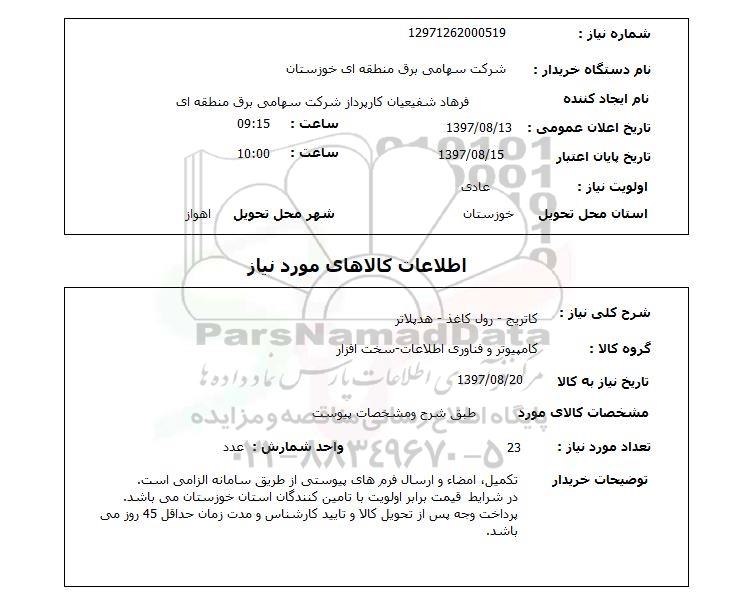 شرح کلی نیاز: کاتریج - رول کاغذ - هد پلاتر