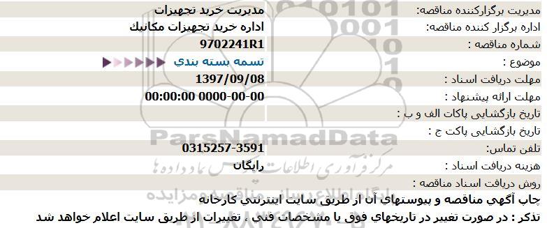 مناقصه تسمه بسته بندی از کلیه افراد متخصص و شرکتها واجد شرایط دعوت به عمل میآید در مناقصه با کد خبرگزاری پارس نماد: 1363891 شرکت نمایند.