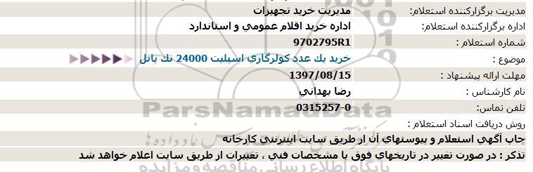 اداره برگزارکننده استعلام: اداره خرید اقلام عمومی و استاندارد