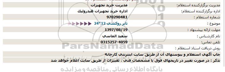 اداره برگزارکننده استعلام: اداره خرید تجهیزات هیدرولیک