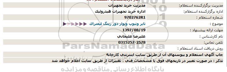 اداره برگزارکننده استعلام: اداره خرید تجهیزات هیدرولیک