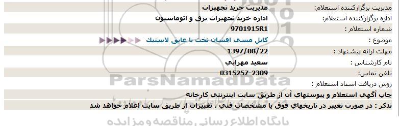 استعلام کابل مسی افشان تخت با عایق لاستیک, استعلام ,استعلام کابل مسی افشان تخت با عایق لاستیک