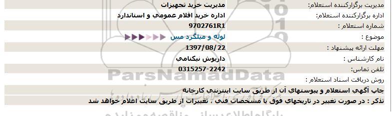 اداره برگزارکننده استعلام: اداره خرید اقلام عمومی و استاندارد