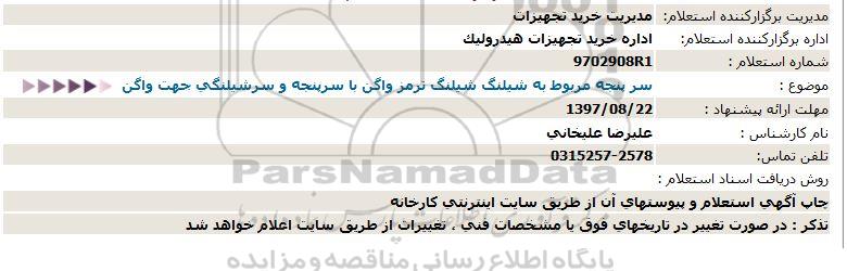 اداره برگزارکننده استعلام: اداره خرید تجهیزات هیدرولیک