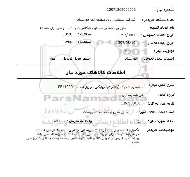 نام دستگاه خریدار: شرکت سهامی برق منطقه ای خوزستان