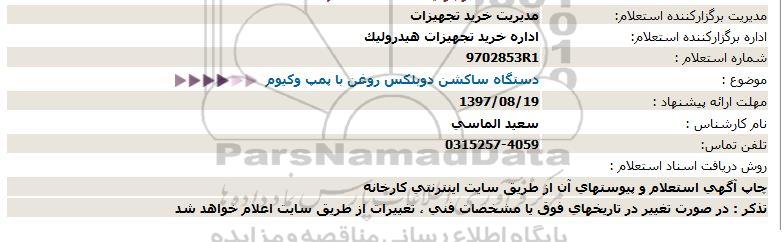 استعلام دستگاه ساکشن دوبلکس روغن با پمپ وکیوم, استعلام, استعلام دستگاه ساکشن دوبلکس روغن با پمپ وکیوم