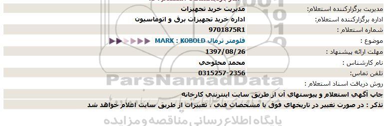 اداره برگزارکننده استعلام: اداره خرید تجهیزات برق و اتوماسیون