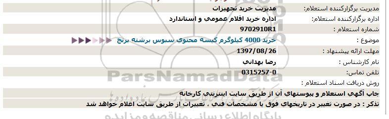 استعلام خرید 4000 کیلوگرم کیسه محتوی سبوس برشته برنج , استعلام , استعلام خرید 4000 کیلوگرم کیسه محتوی سبوس برشته برنج