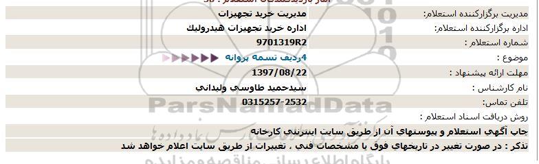 اداره برگزارکننده استعلام: اداره خرید تجهیزات هیدرولیک
