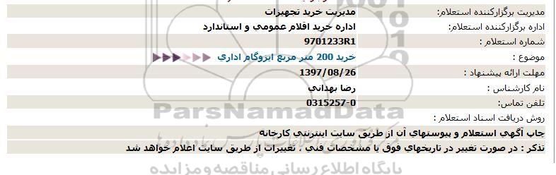 اداره برگزارکننده استعلام: اداره خرید اقلام عمومی و استاندارد