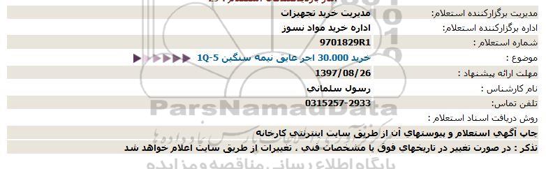 موضوع : خرید 30.000 اجر عایق نیمه سنگین 1Q-5