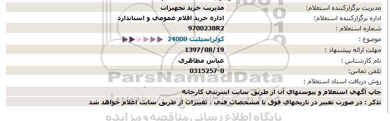 اداره برگزارکننده استعلام: اداره خرید اقلام عمومی و استاندارد
