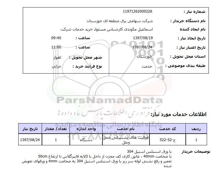 نام دستگاه خریدار : شرکت سهامی برق منطقه ای خوزستان