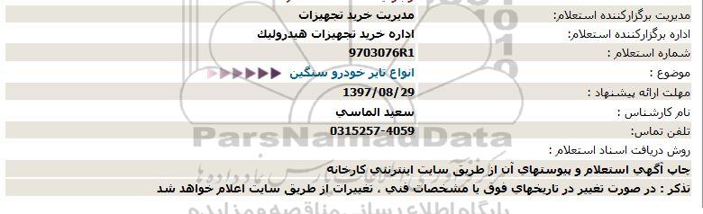 اداره برگزارکننده استعلام: اداره خرید تجهیزات هیدرولیک