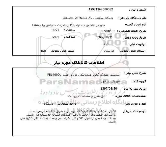 نام دستگاه خریدار: شرکت سهامی برق منطقه ای خوزستان