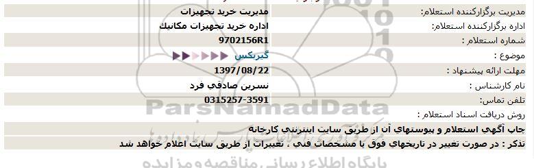 اداره برگزارکننده استعلام: اداره خرید تجهیزات مكانیک