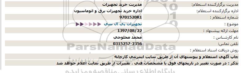 اداره برگزارکننده استعلام: اداره خرید تجهیزات برق و اتوماسیون