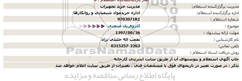 اداره برگزارکننده استعلام:     اداره خریدمواد شیمیایی و روانکارها