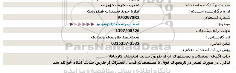 اداره برگزارکننده استعلام: اداره خرید تجهیزات هیدرولیک