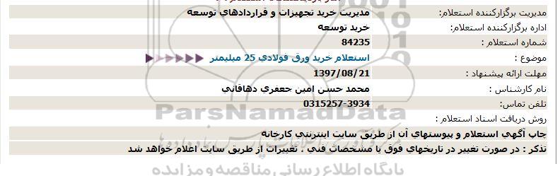 موضوع : استعلام خرید ورق فولادی 25 میلیمتر