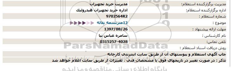 اداره برگزارکننده استعلام: اداره خرید تجهیزات هیدرولیک