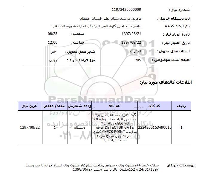 نام دستگاه خریدار: فرمانداری شهرستان نطنز - استان اصفهان