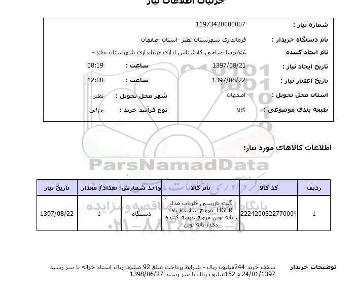نام دستگاه خریدار: فرمانداری شهرستان نطنز-استان اصفهان
