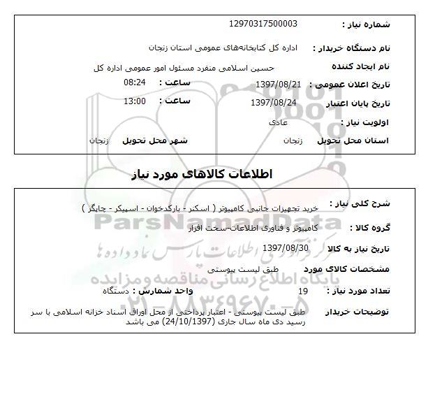 نام دستگاه خریدار: اداره کل کتابخانه های عمومی استان زنجان