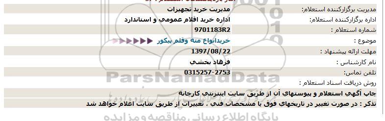 اداره برگزارکننده استعلام: اداره خرید اقلام عمومی و استاندارد