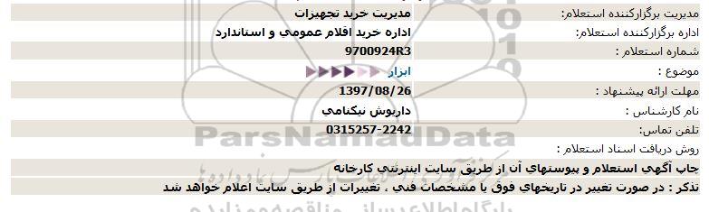 اداره برگزارکننده استعلام: اداره خرید اقلام عمومی و استاندارد