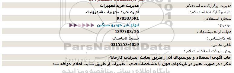 اداره برگزارکننده استعلام: اداره خرید تجهیزات هیدرولیک