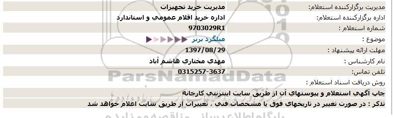 اداره برگزارکننده استعلام: اداره خرید اقلام عمومی و استاندارد