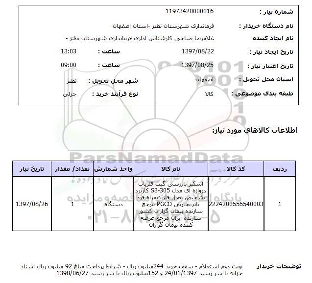 نام دستگاه خریدار: فرمانداری شهرستان نطنز - استان اصفهان