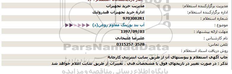 اداره برگزارکننده استعلام: اداره خرید تجهیزات هیدرولیک