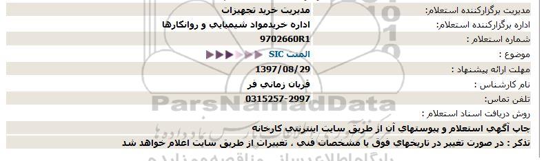 اداره برگزارکننده استعلام: اداره خریدمواد شیمیایی و روانکارها